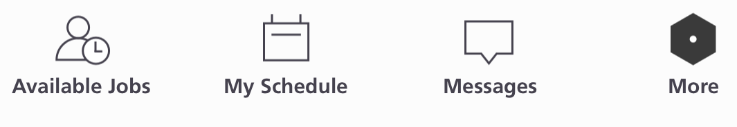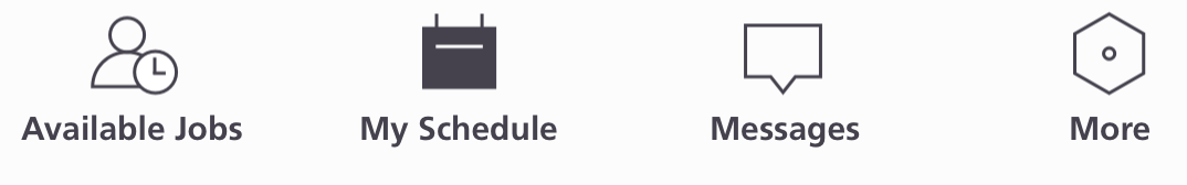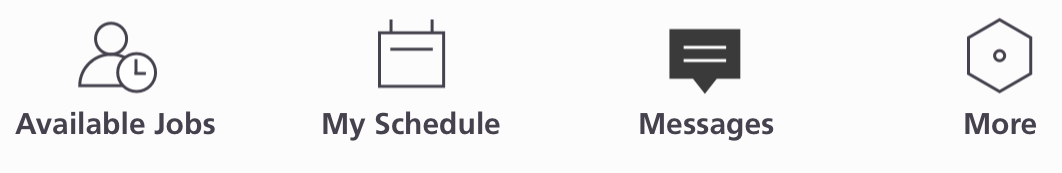 When you are logged into the app, you can use the navigation menu at the bottom of your phone to access jobs, your schedule, messages and more.