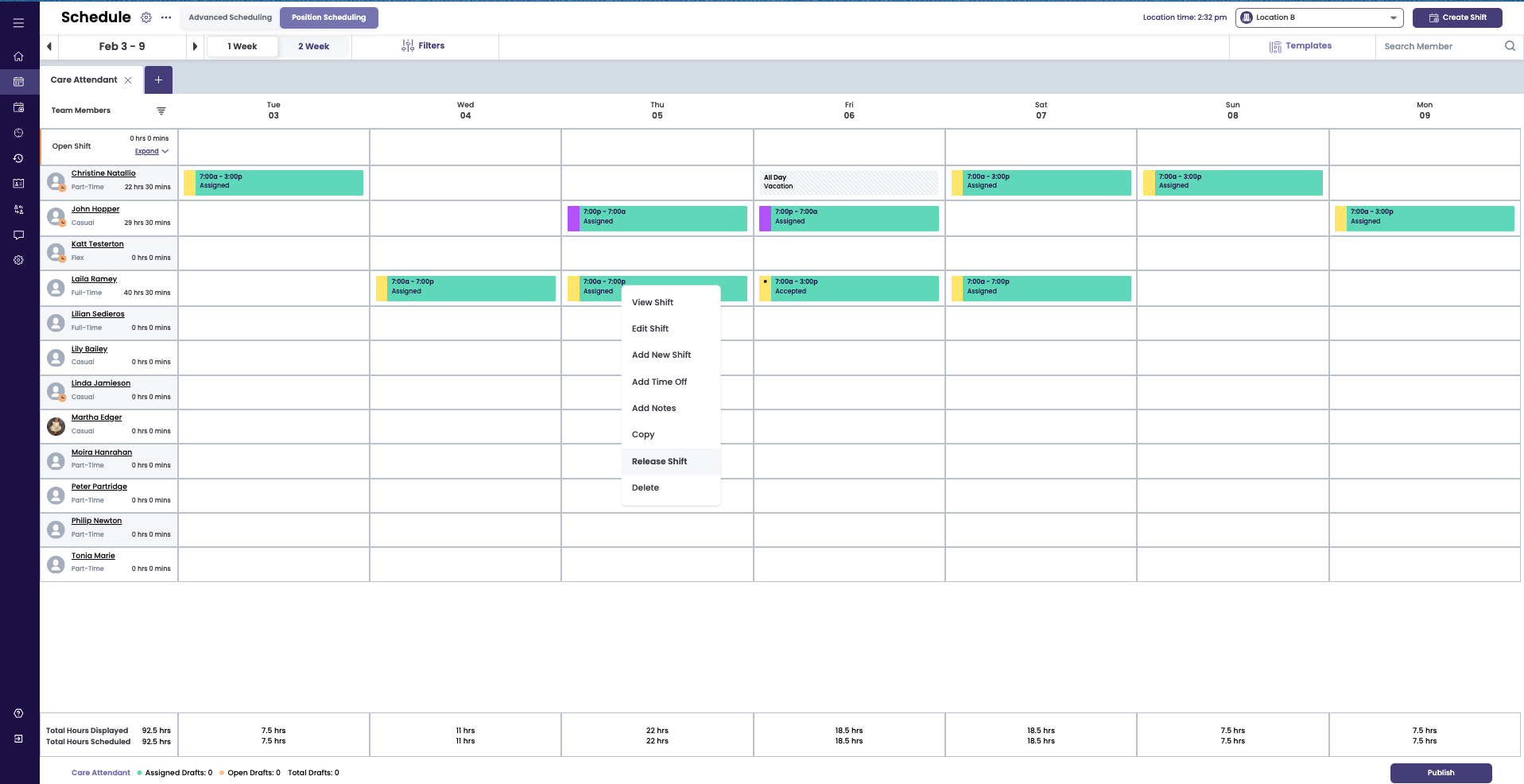 Select the shift to release by right-clicking it and choosing the "Release Shift" option